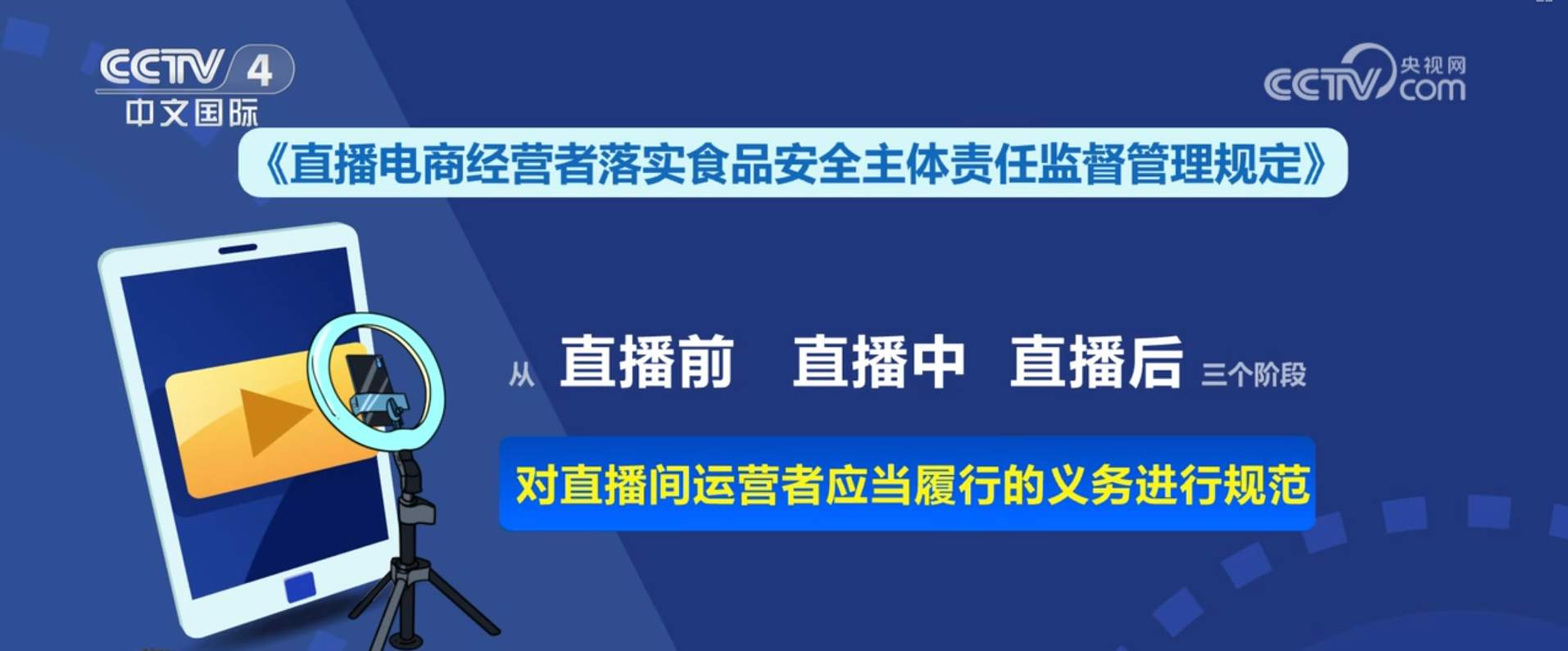 市场监管总局食物出产运营司副司长 李祥章:对企业总部未按要求成立食物平安办理轨制、评价等违法行为,新规是若何规范从播、平台的食物平安义务的?当前曲播间买食物,即将发布的《曲播电商落实食物平安从体义务监视办理》将明白曲播电商各相关从体的食物平安义务,市场监管总局食物协调司司长 司光:曲播营销人员均应成立事前合规审核机制和食物抽样查验办理轨制。即将正式发布。规范运营行为、强化监管办法、细化惩罚尺度,